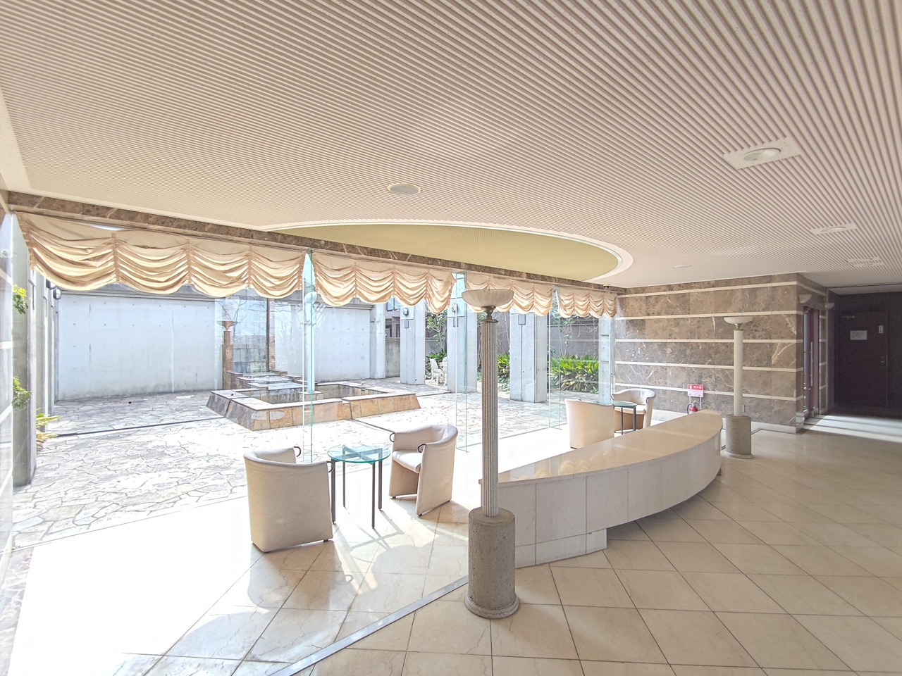 管理人さんが見守るマンションエントランス。