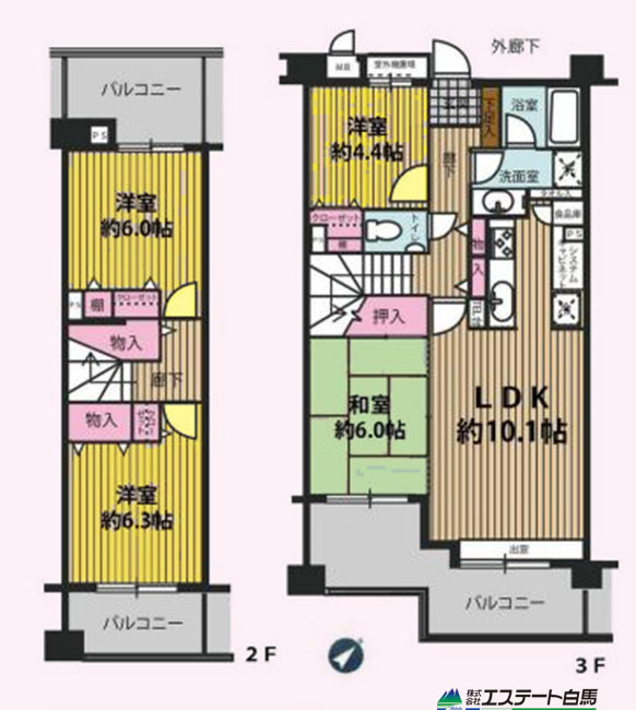 | 間取 | 4LDK (LDK10.1帖、和室6帖、洋室6.3帖、洋室6帖、洋室4.4帖) | ||