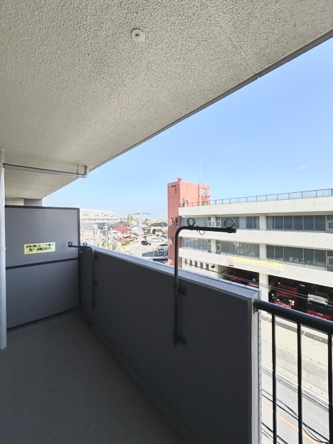 陽ざしが差込む明るいバルコニー。奥行きのあるバルコニーはお洗濯時に助かります。