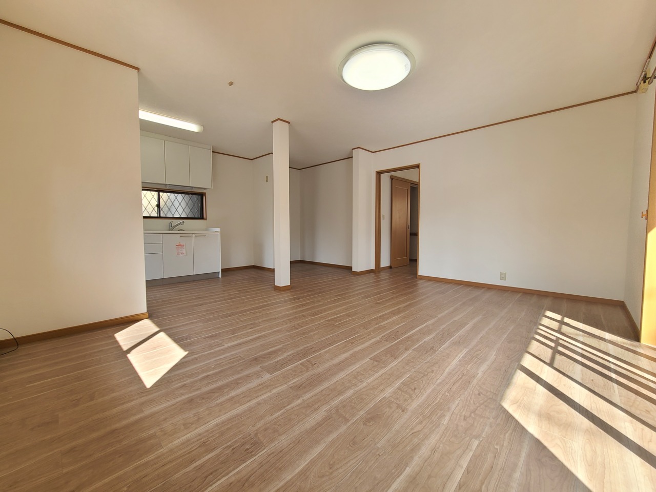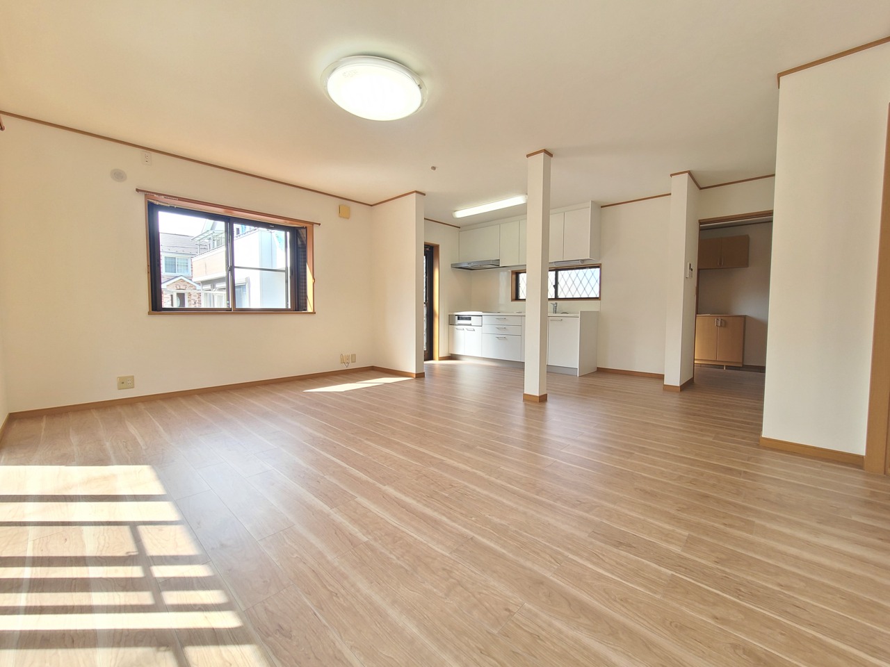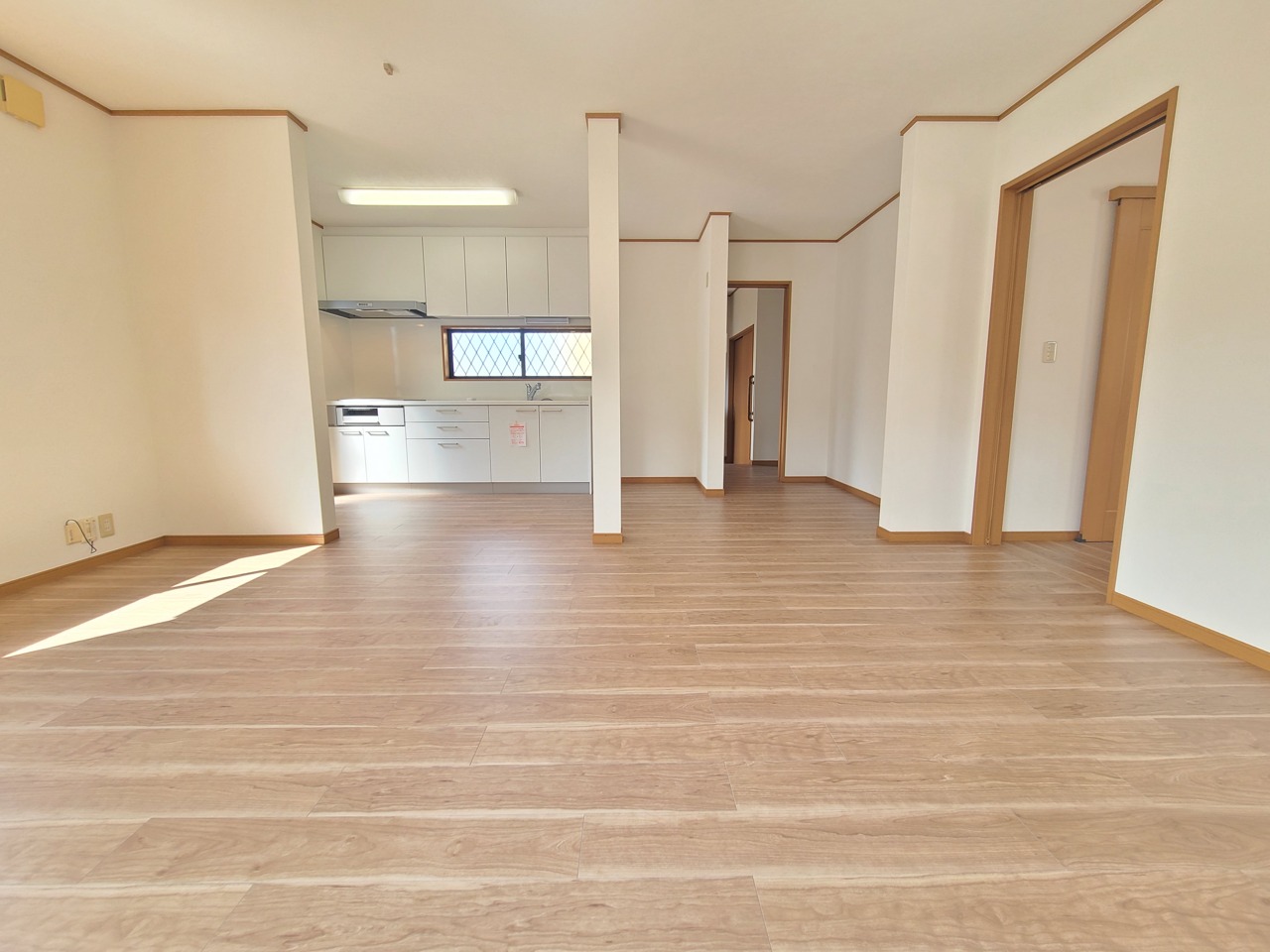 広々とした空間に、木目調の床が温かみと落ち着きをもたらします