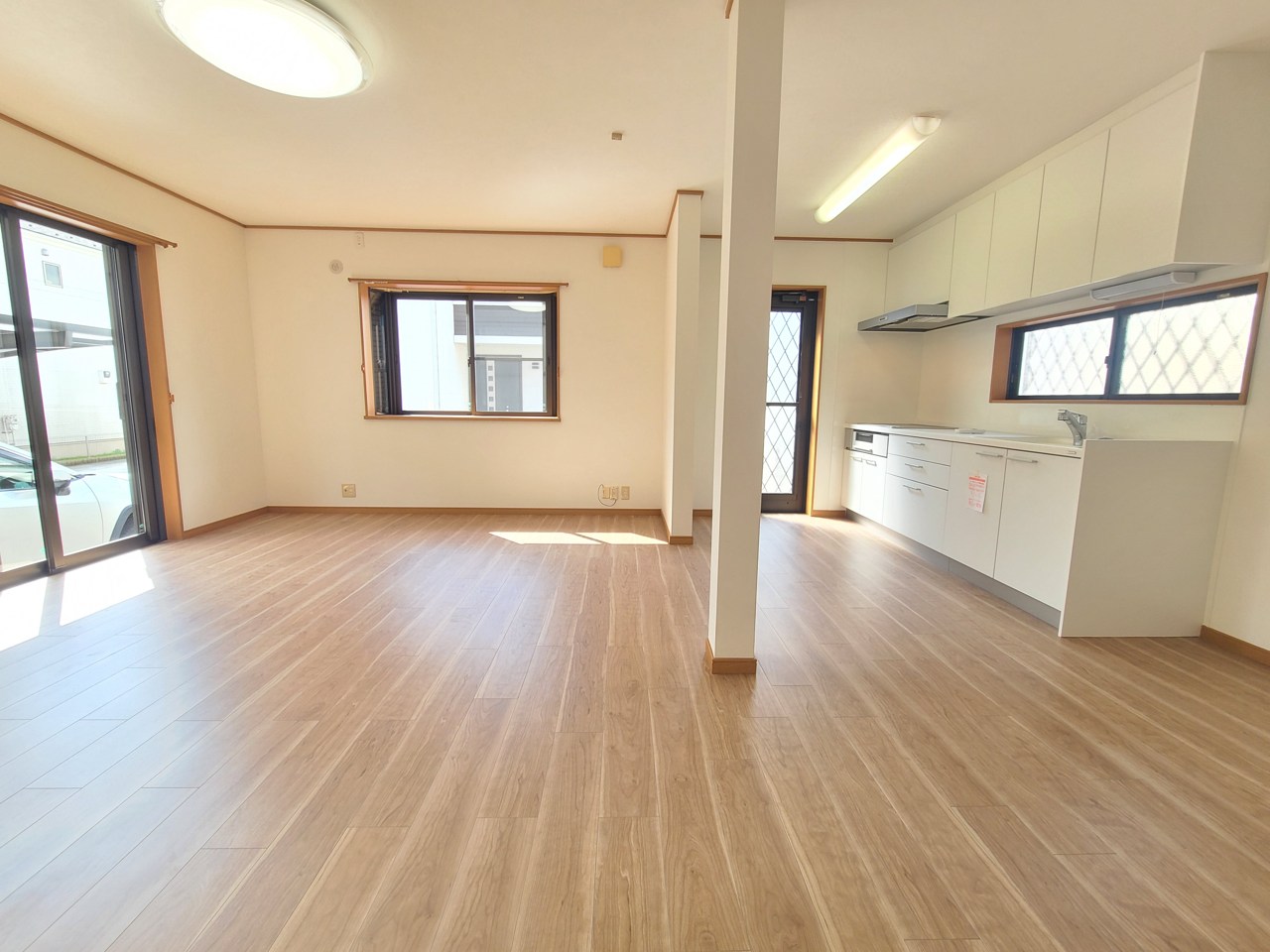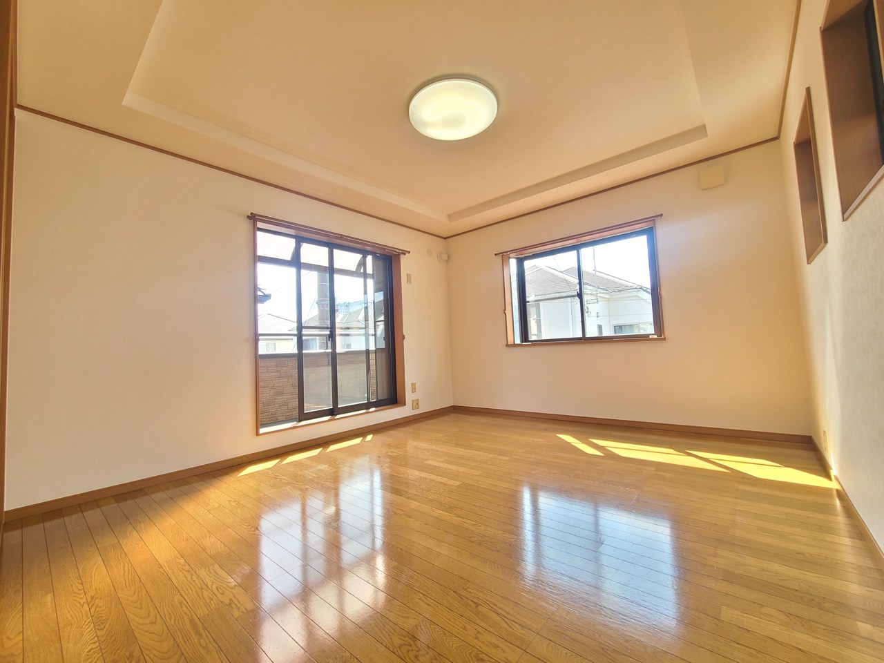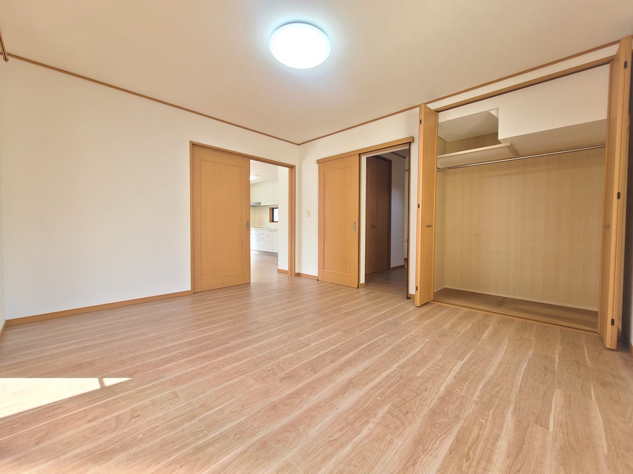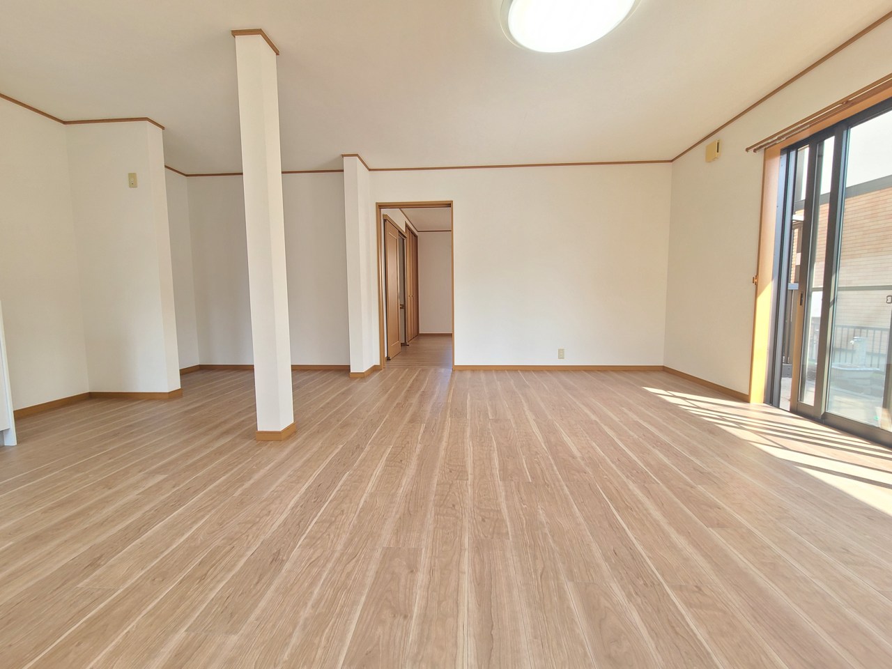広々とした空間に、木目調の床が温かみと落ち着きをもたらします