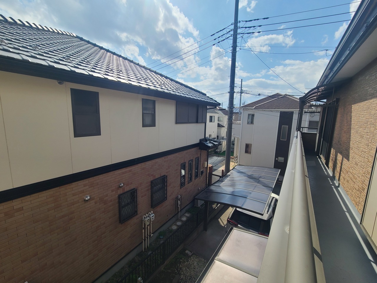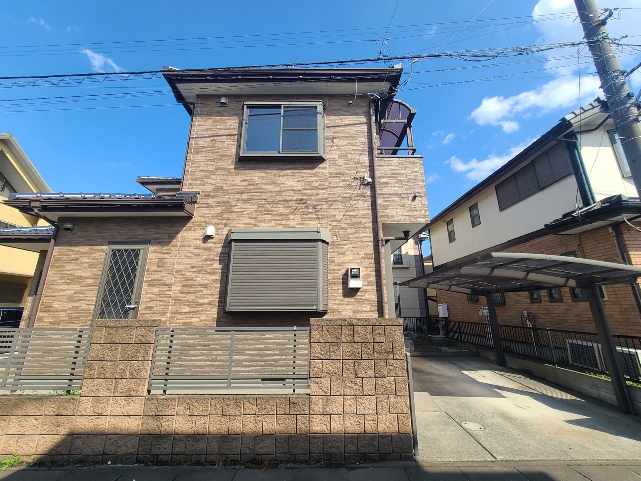 穏やかな空の下、落ち着いた街並みに佇む住まい。