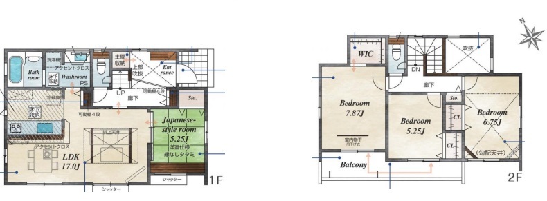 | 間取 | 4LDK (LDK17帖、和室5.25帖、洋室7.87帖、洋室6.75帖、洋室5.25帖) | ||