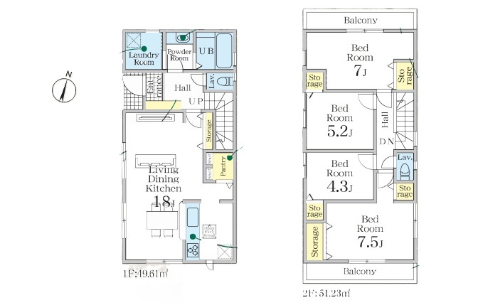 | 間取 | 4LDK (LDK18帖、洋室7.5帖、洋室7帖、洋室5.2帖、洋室4.3帖) | ||