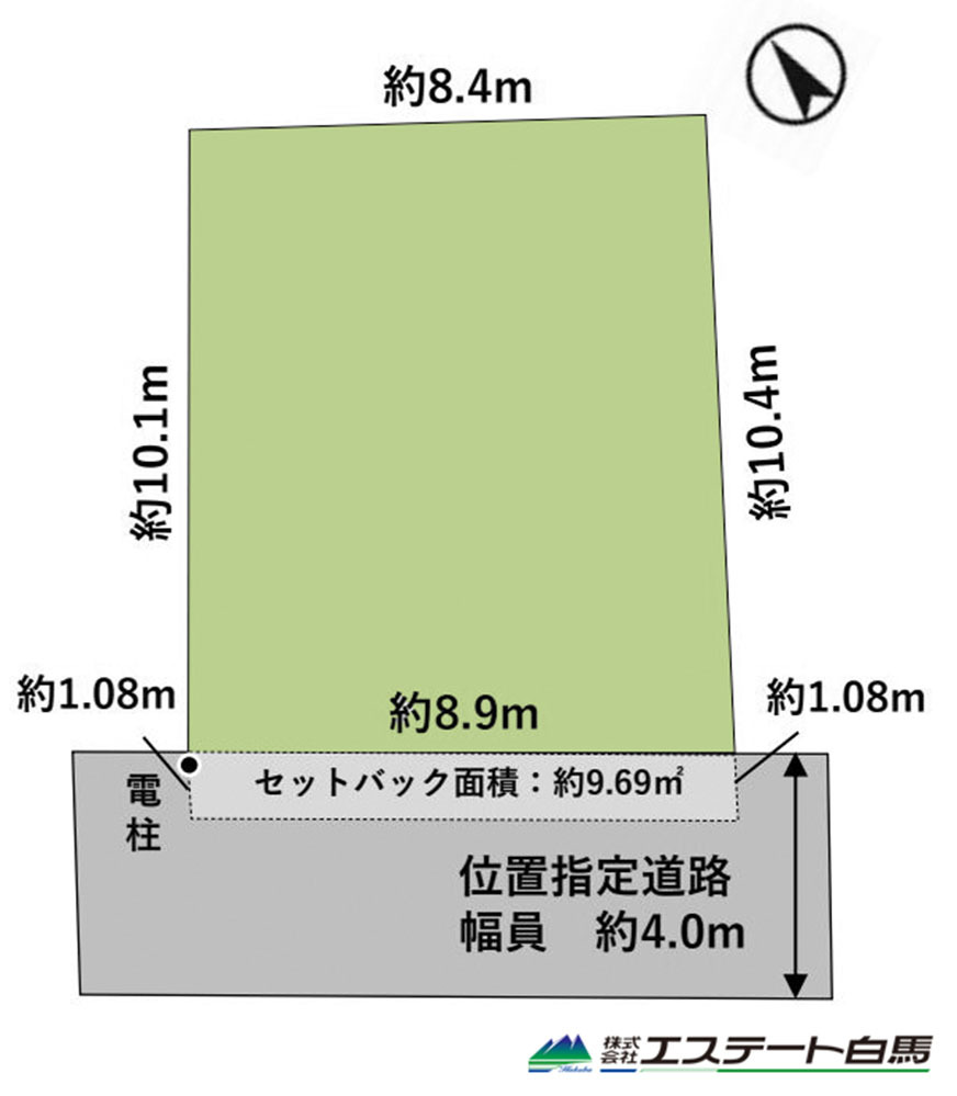 | 土地面積 | 89.12m² 実測 (私道100m²別に有、私道持分比率:1/5、セットバック9.69m²) | ||