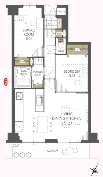 | 間取 | 1SLDK (LDK15.2帖、洋室5.0帖、S6.0帖) | ||
