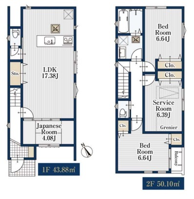 | 間取 | 3SLDK (LDK17.38帖、和室4.08帖、洋室6.64帖、洋室6.64帖、S6.39帖) | ||
