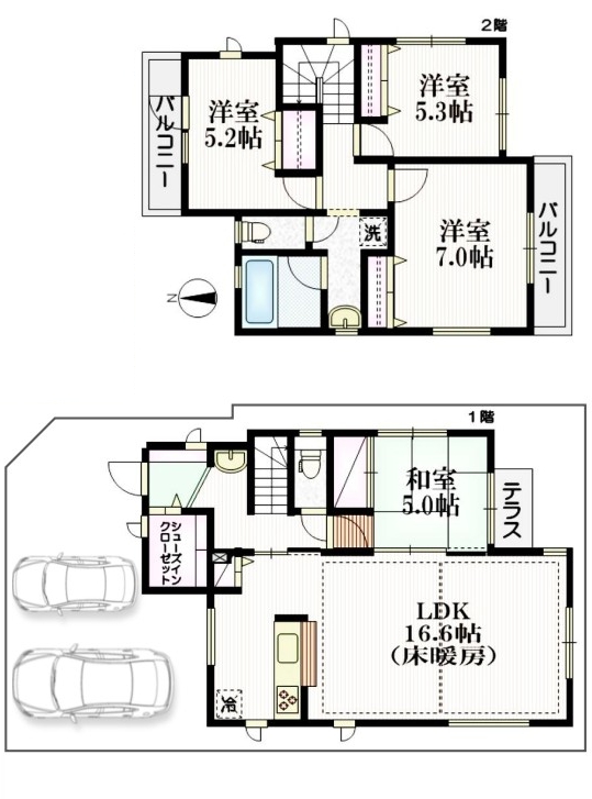 | 間取 | 4LDK (LDK16.6帖、洋室7.0帖、洋室5.3帖、洋室5.2帖、和室5.0帖) | ||