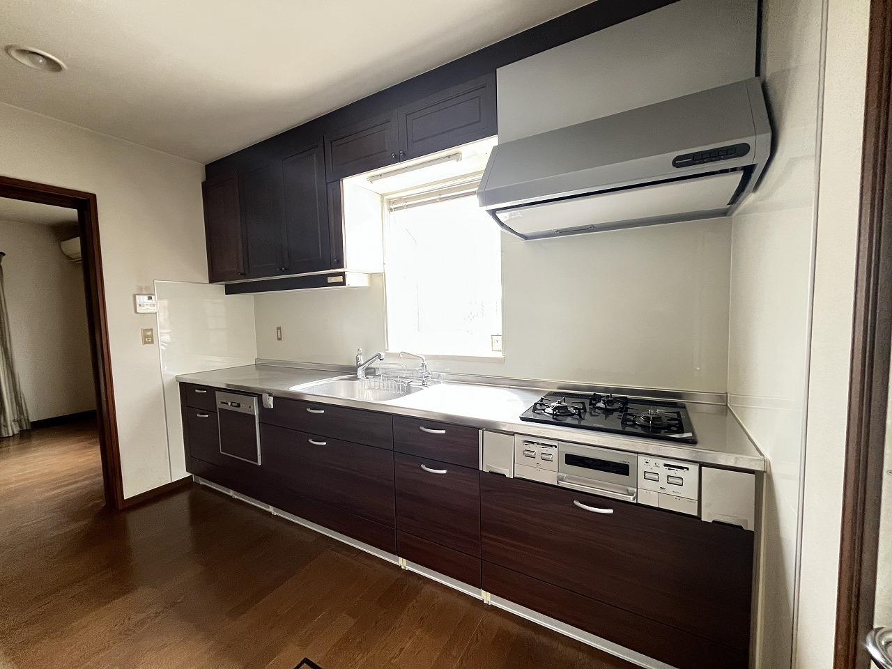 手を伸ばせばそこに収納が。安定した使用感の吊戸棚つきのキッチン空間。