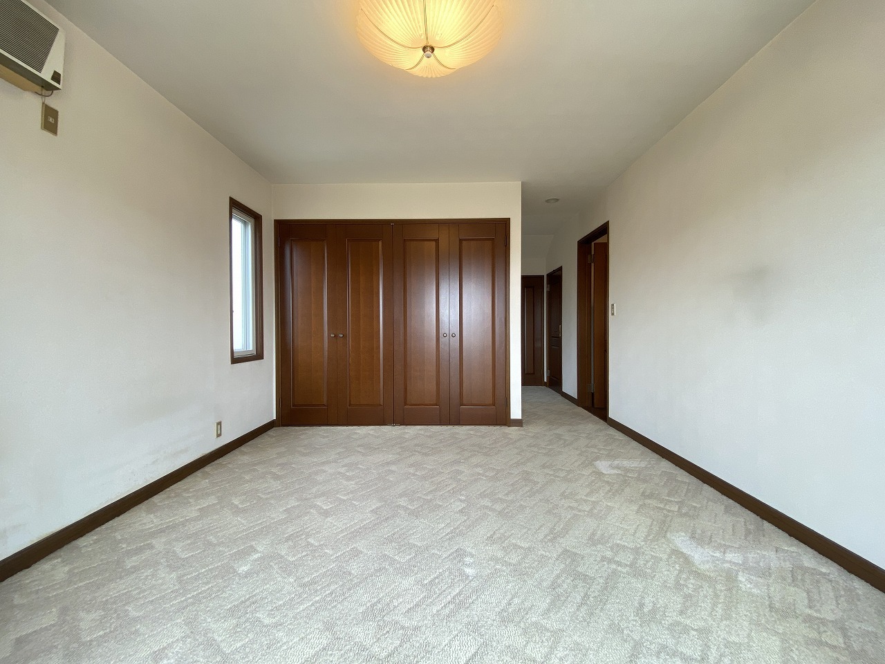 8.6帖の大きめのベッドを置いてまだ余裕があります。奥にもスペースありますのでリモートワークや趣味に使えます。
