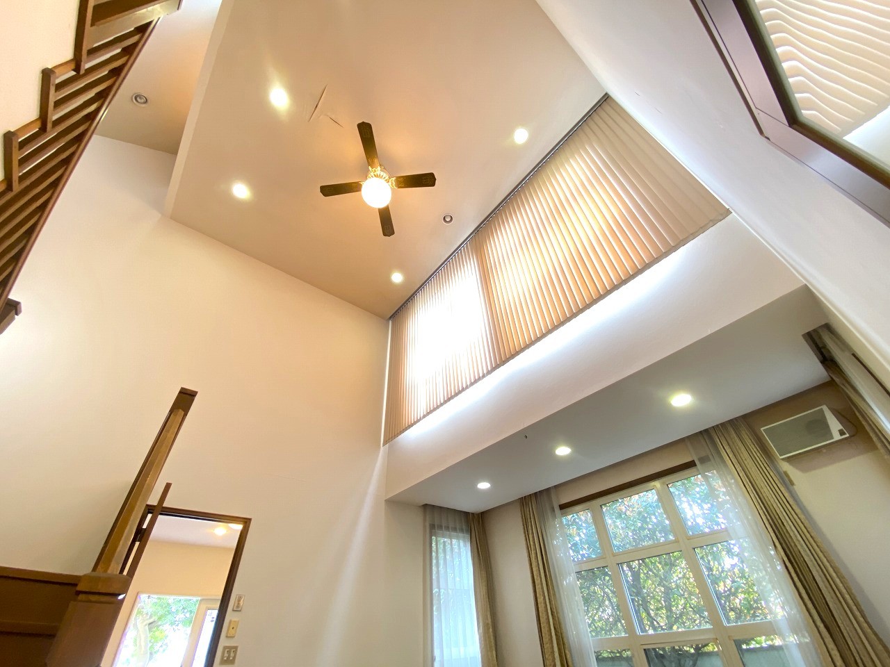 リビング天井高で解放感に溢れています。ファンもついていますので、空気調整もしっかりと効きそうです。