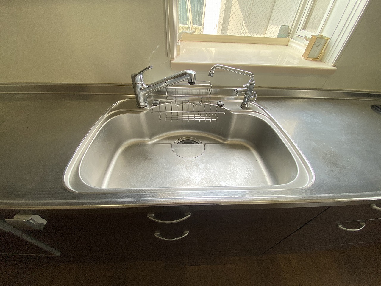 シンク周りのお掃除が楽になる可動式の蛇口を搭載。