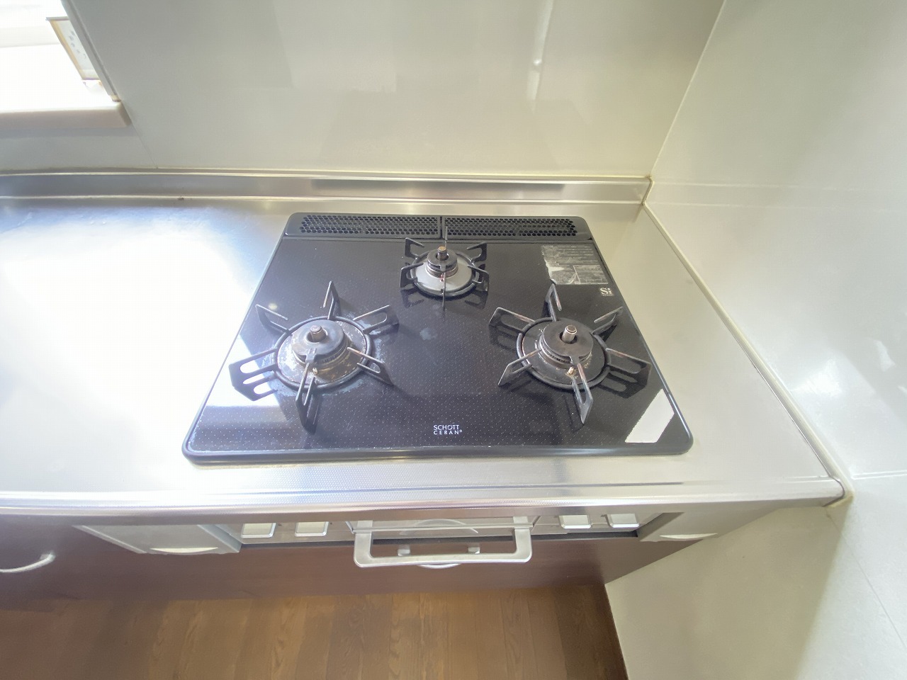 お掃除のしやすいフラットタイプの3口コンロです