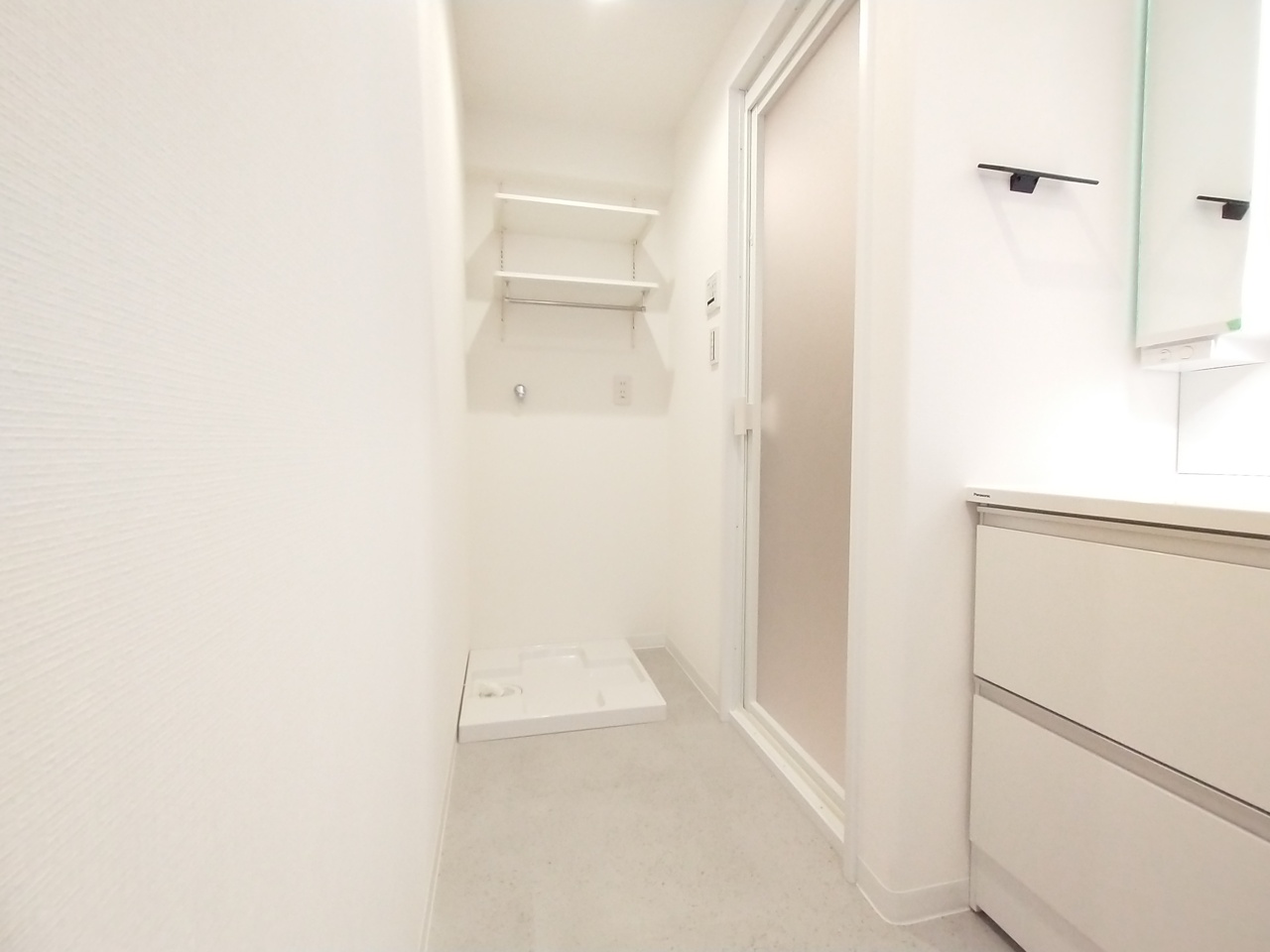 たっぷりの収納を設けたシャワー付洗面台で快適な暮らし。