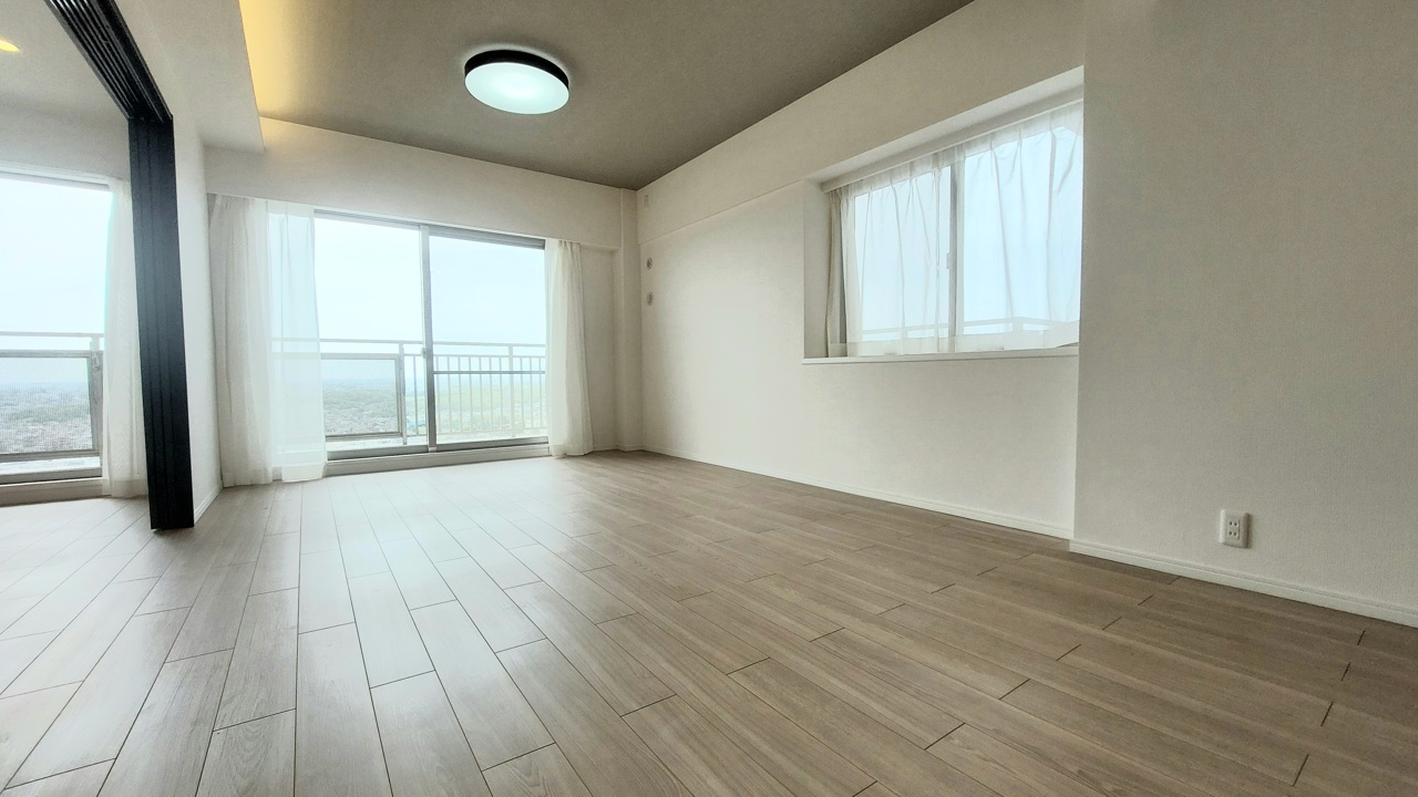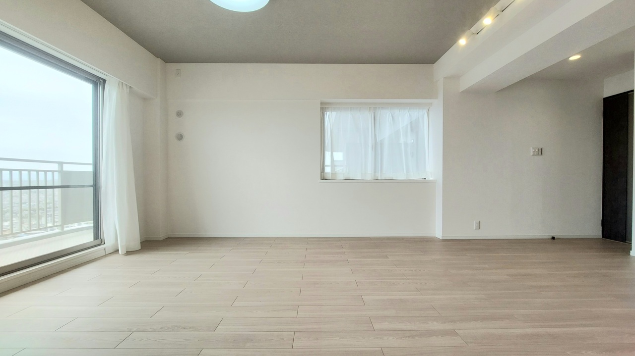 大きな開口部から明るい光が差し込むリビング。日中の室内の明るさがこの部屋の魅力です。