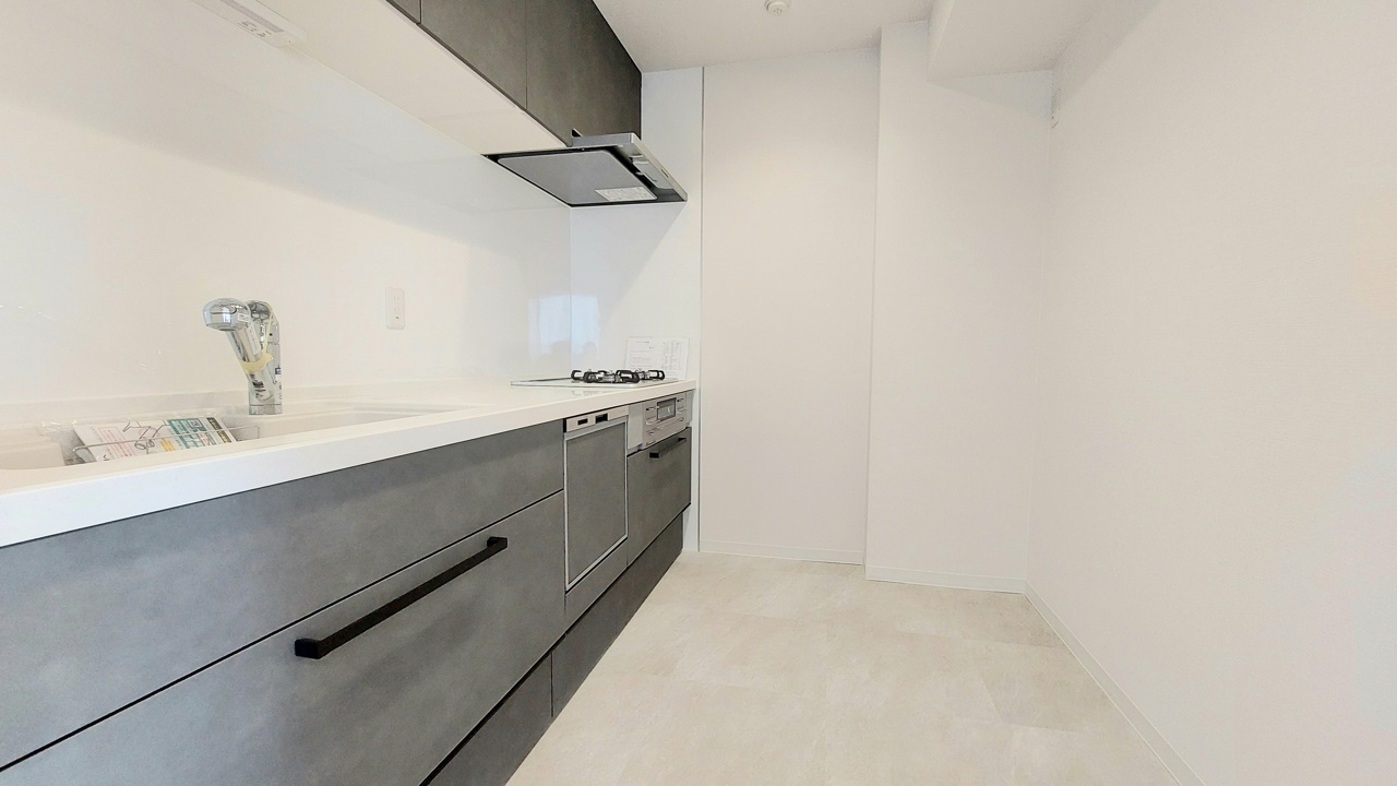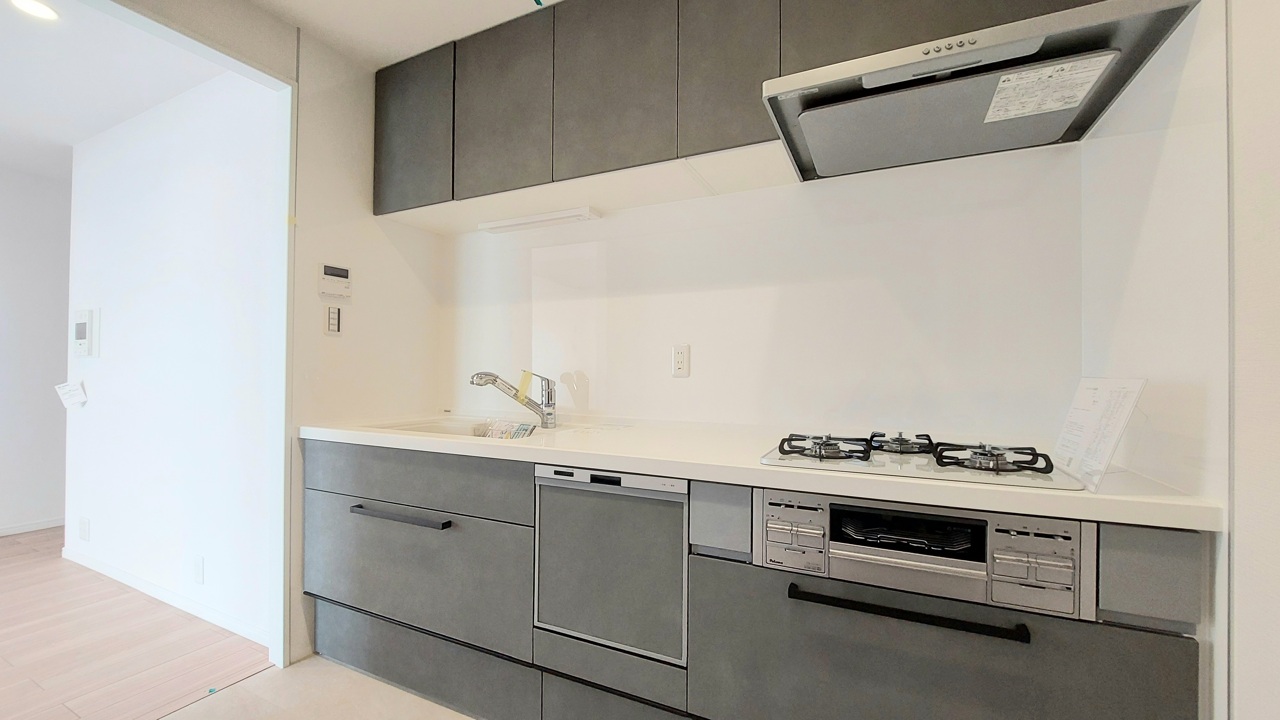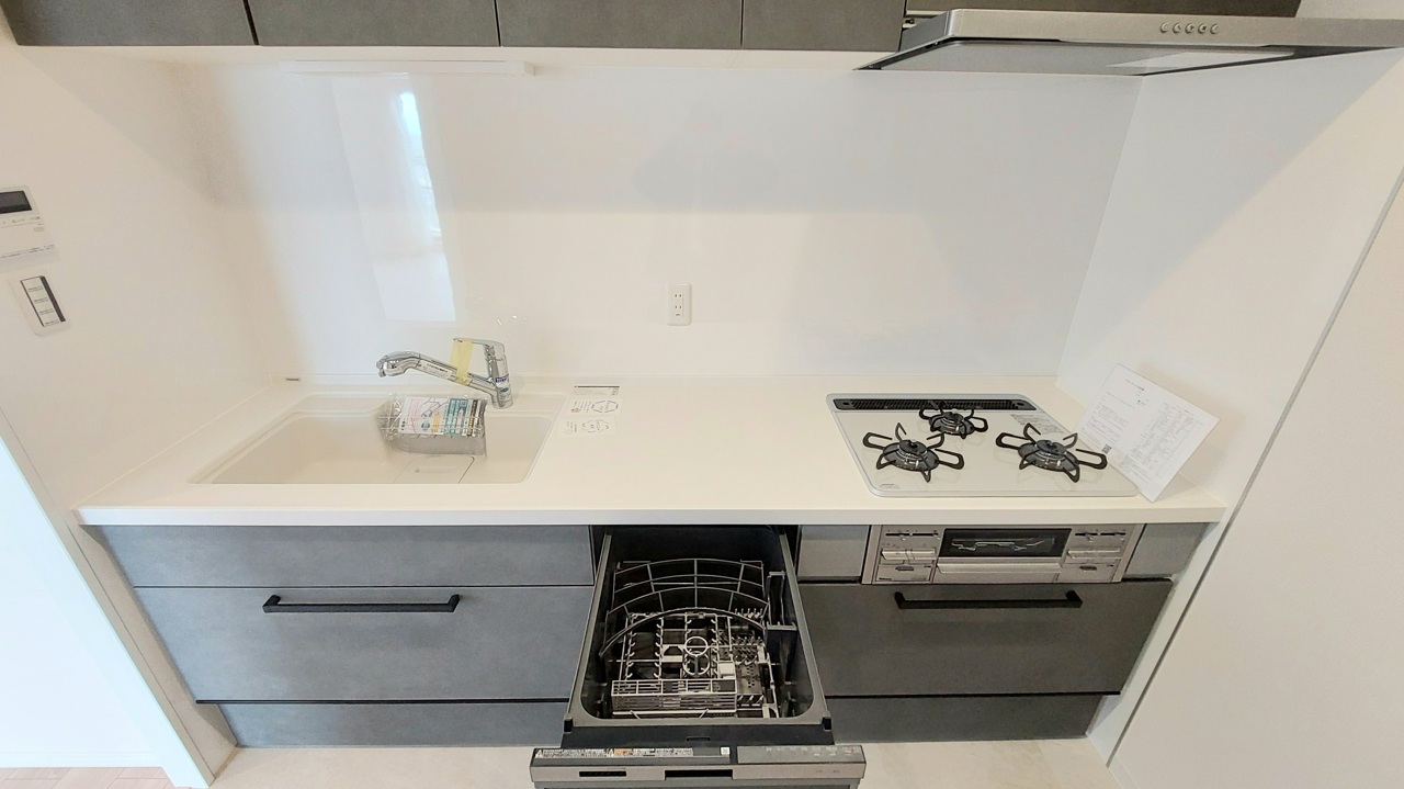 時短に活躍する食器洗浄機や一杯の水も楽しめる浄水器があるシステムキッチン。