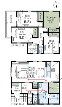| 間取 | 3SLDK (LDK18帖、洋室6.5帖、洋室6帖、洋室5.3帖、S5.3帖) | ||