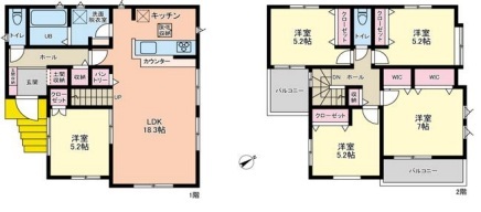 | 間取 | 5LDK (LDK18.3帖、洋室7帖、洋室5.2帖、洋室5.2帖、洋室5.2帖、洋室5.2帖) | ||