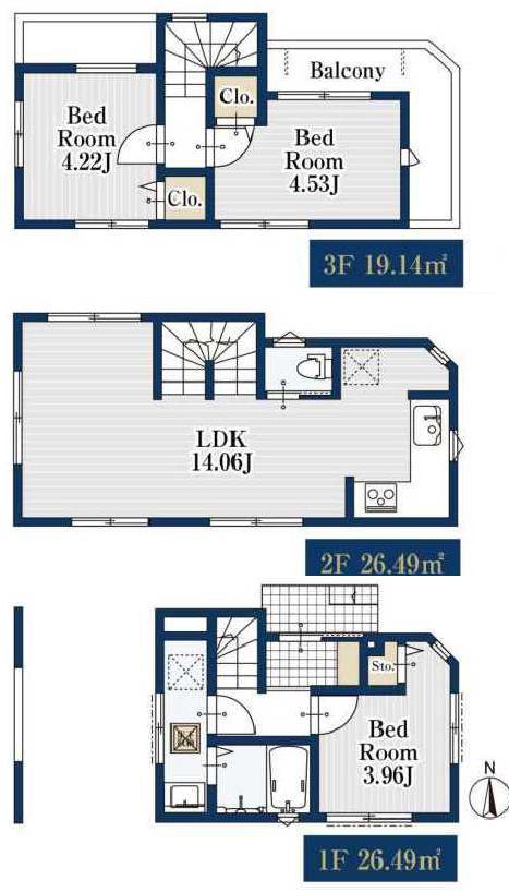| 間取 | 3LDK (洋室3.96帖、LDK14.6帖、洋室4.22帖、洋室4.53帖) | ||