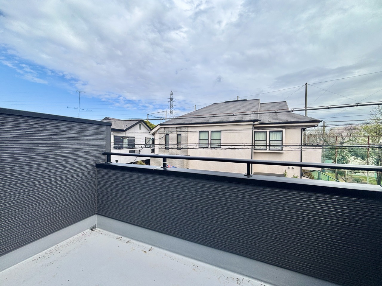 南側のお部屋から出入りできる、奥行きのあるワイドバルコニー。心地よい陽射しと暖かな風を楽しむことが出来ます。