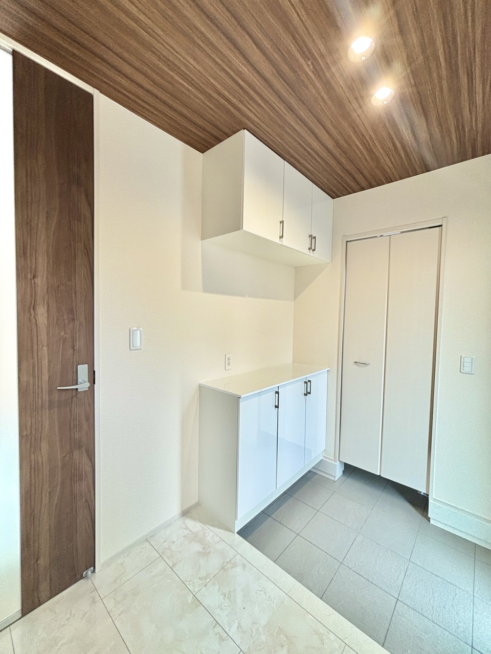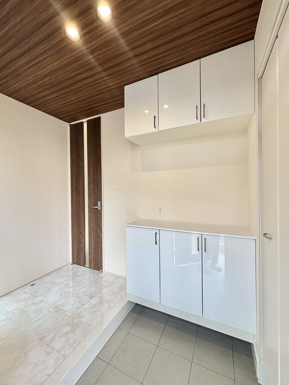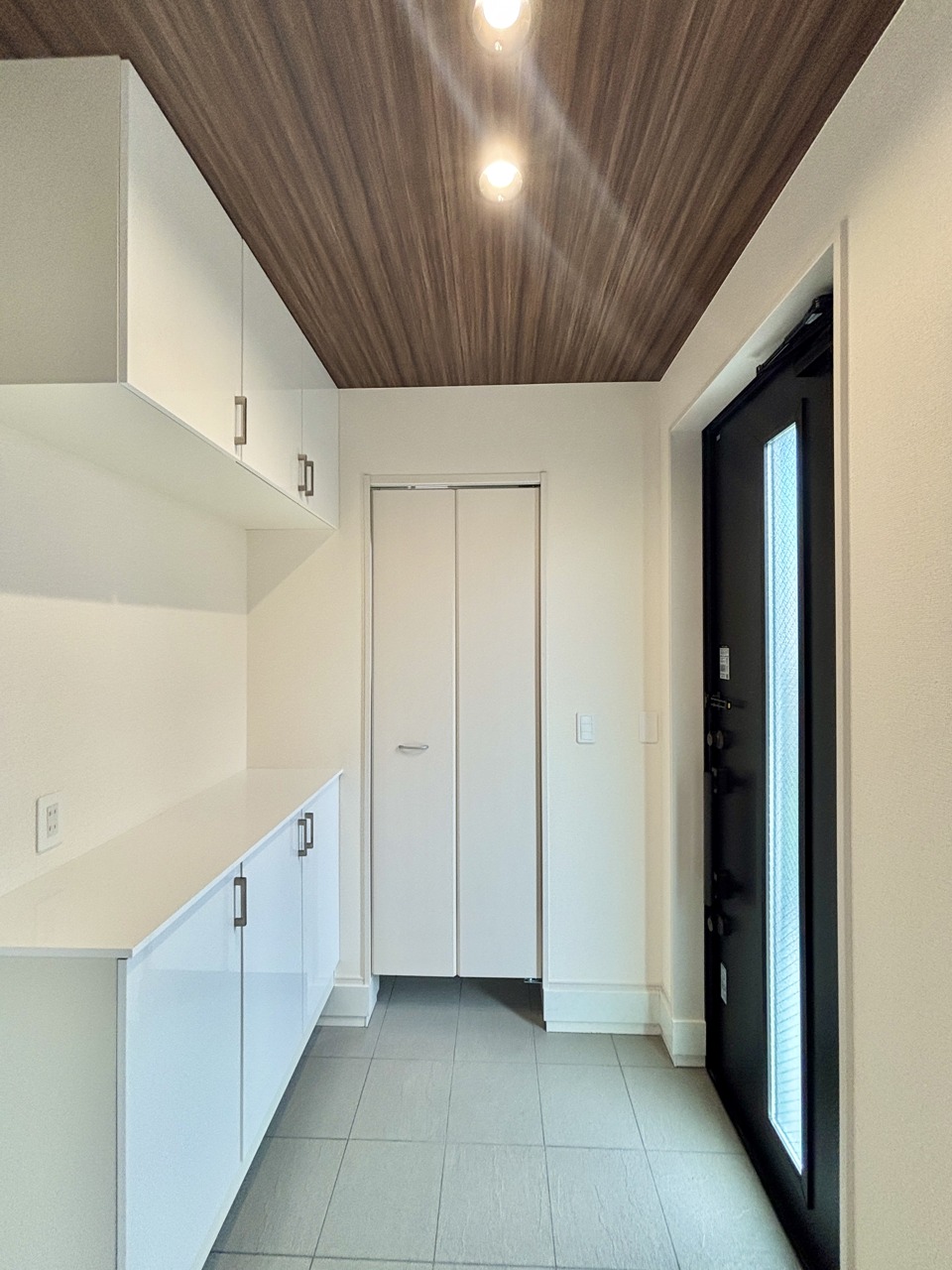 明るく開放的な玄関、靴の脱ぎ履きもしやすく、収納も豊富でご家族皆様の靴をスッキリ収納できます。
