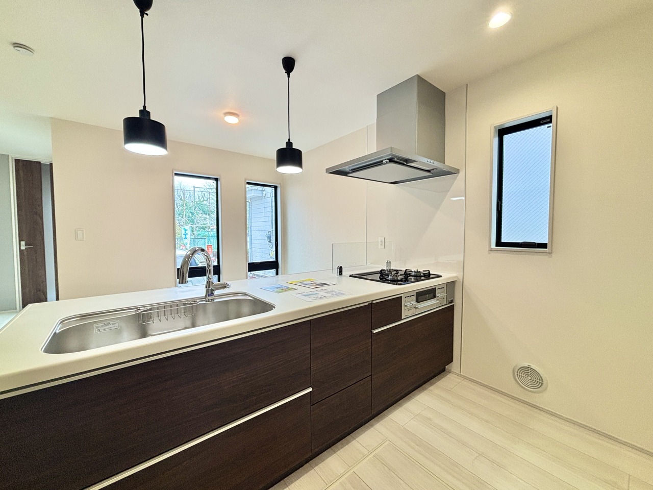 明るい光が降り注ぐ窓があるキッチンはお料理を作る時の気持ちもいつもより明るくなります。近くに窓があるので換気もしやすいですね。