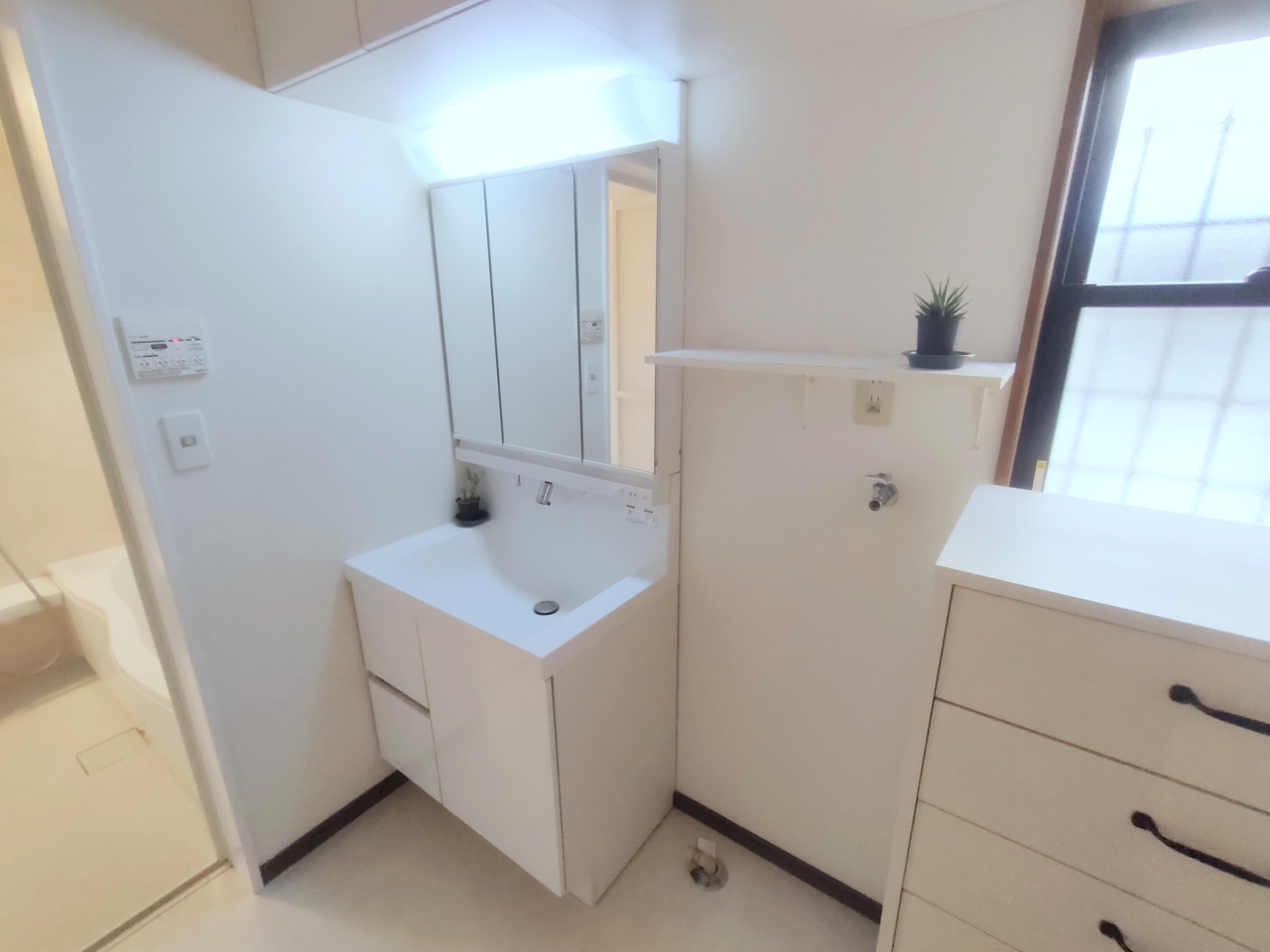 たっぷりの収納を設けたシャワー付洗面台で快適な暮らし。