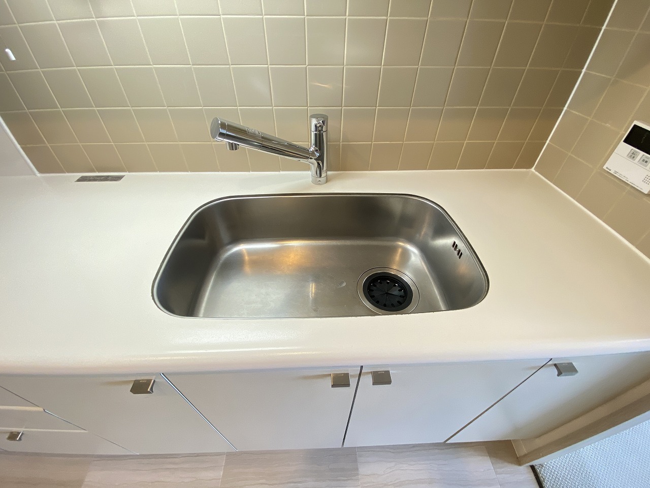 照り返しが眩しいシンク付きのキッチンで、楽しくお料理しませんか。