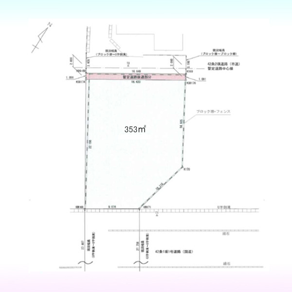 | 土地面積 | 353m² 公簿 (私道11.78m²別に有、セットバック6.36m²) | ||