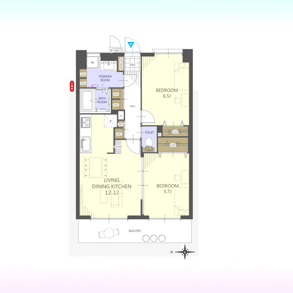 | 間取 | 2LDK (LDK12.1帖、洋室6.5帖、洋室5.7帖) | ||