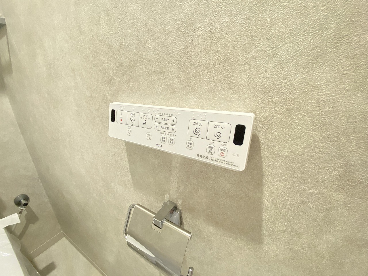 もちろんウォシュレット機能付き。憩いの場としてひそかに注目度の高いお手洗いにもご注目ください。