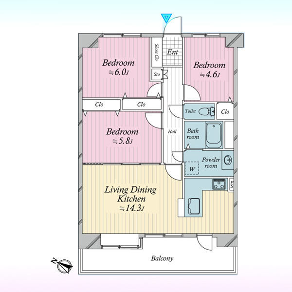 | 間取 | 3LDK (LDK14.3帖、洋室6帖、洋室5.8帖、洋室4.6帖) | ||