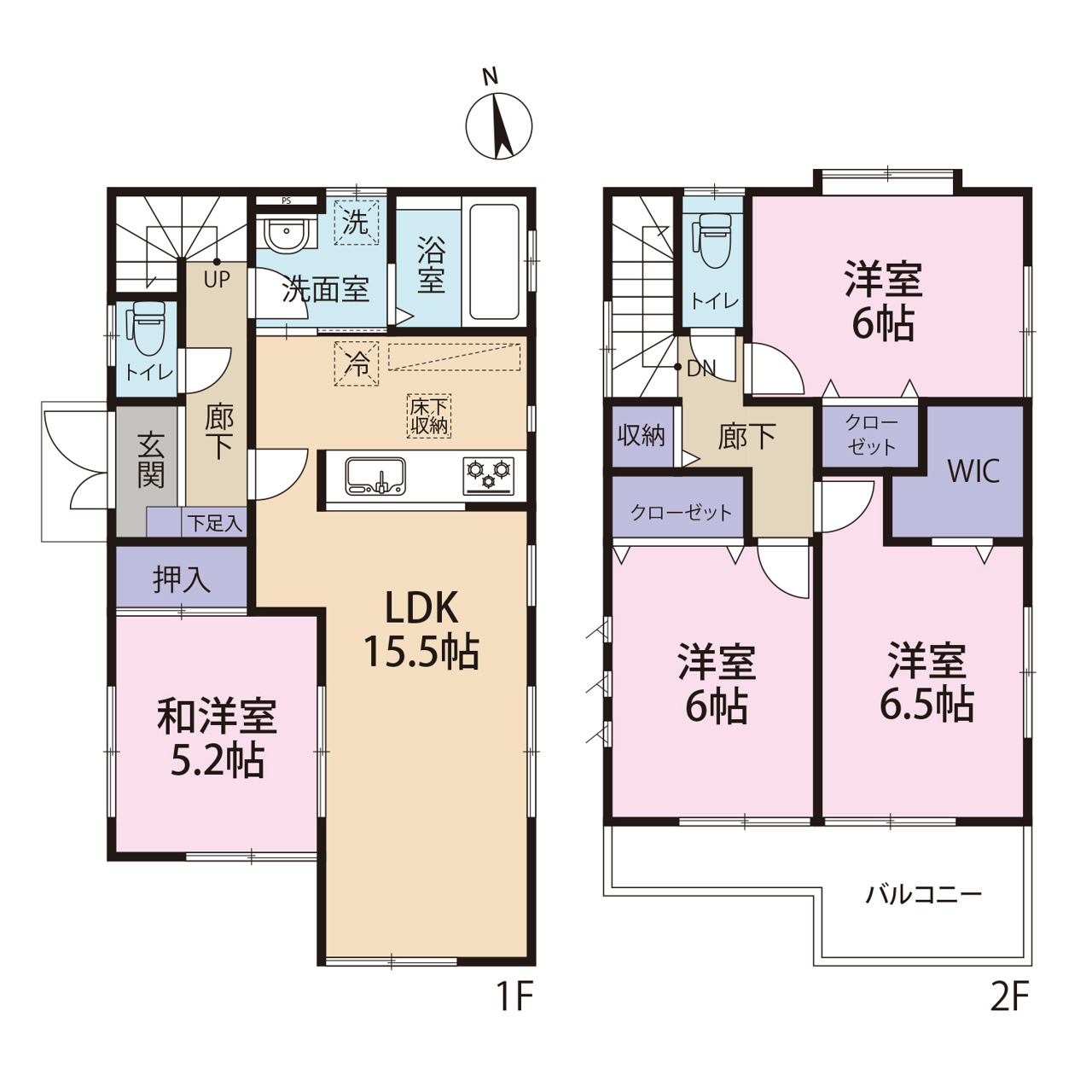 | 間取 | 4LDK (LDK15.5帖、洋室5.2帖、洋室6.5帖、洋室6帖、洋室6帖) | ||