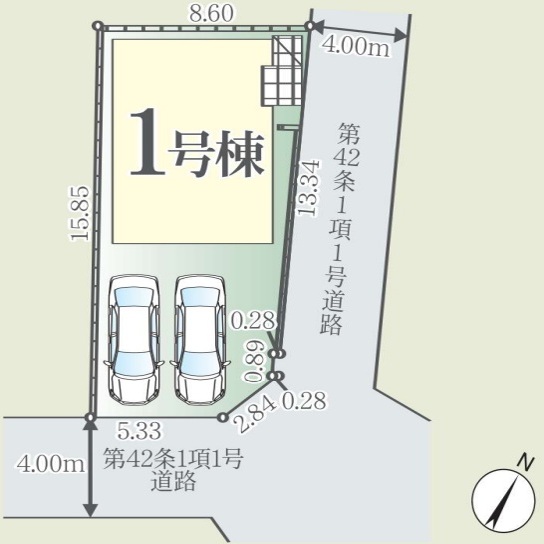 | 接道 | 北東側4M公道に13.3M接道 南西側4M公道に5.33M接道 |