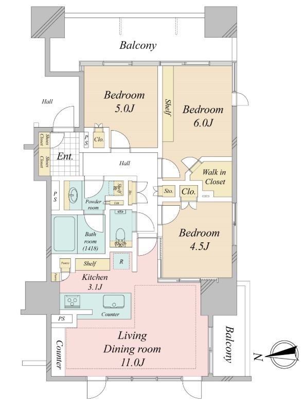 | 間取 | 3LDK (洋室5帖、洋室6帖、洋室4.5帖、LD11帖、K3.1帖) | ||