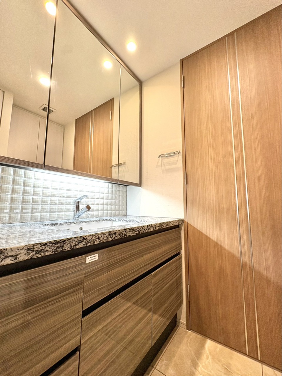 2014年築、南向きの三方向角部屋住戸、陽当たり風通し良好。床暖房や食洗器、浴室乾燥機など設備も充実。オートロック、宅配ボックス、24時間ゴミ出し可。