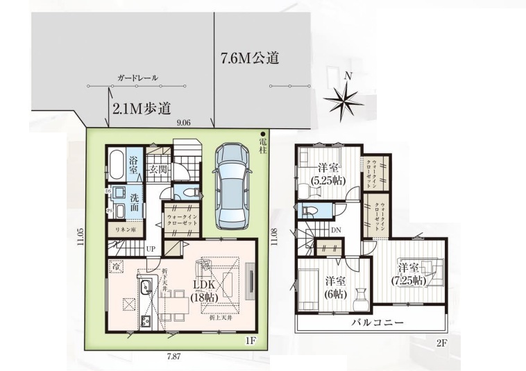 | 間取 | 3LDK (LDK18帖、洋室7.25帖、洋室6帖、洋室5.25帖) | ||
