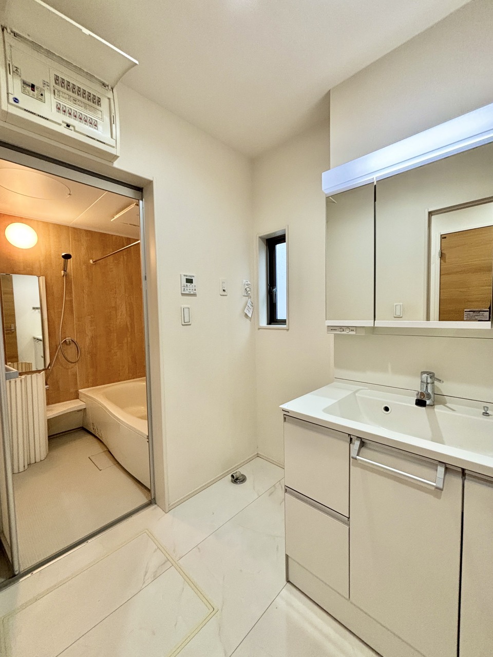 ゆとりの洗面スペースで朝の身支度もスムーズに行えます。