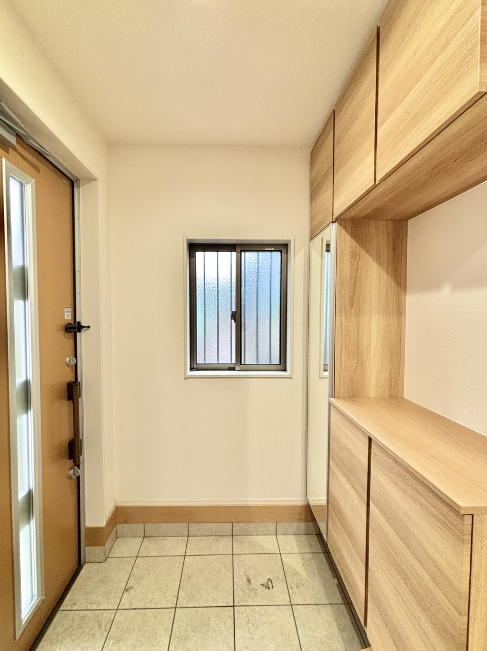 明るく開放的な玄関、靴の脱ぎ履きもしやすく、収納も豊富でご家族皆様の靴をスッキリ収納できます。