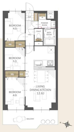 | 間取 | 3LDK (LDK12.6帖、洋室4.0帖、洋室4.0帖、洋室3.2帖) | ||