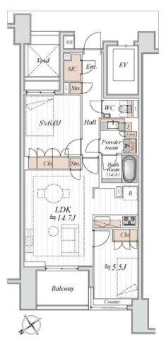 | 間取 | 1SLDK (LDK14.7帖、洋室5.5帖、S6.0帖) | ||