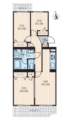 | 間取 | 3LDK (LDK9.5帖、洋室6帖、洋室5.5帖、洋室3.5帖) | ||