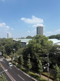 開放的な角部屋住戸、室内リノベーション物件、安心のアフターサービス保証付き。リビングから飛鳥山公園の木々を望めます。