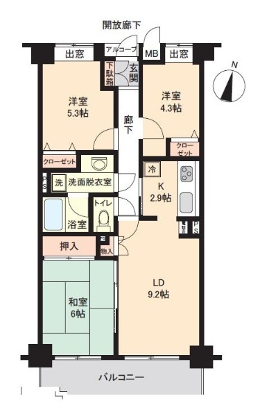 | 間取 | 3LDK (LDK12.1帖、和室6帖、洋室5.3帖、洋室4.3帖) | ||