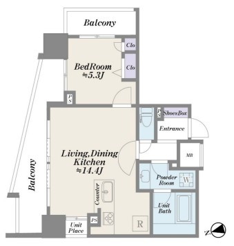 | 間取 | 1LDK (LDK14.4帖、洋室5.3帖) | ||