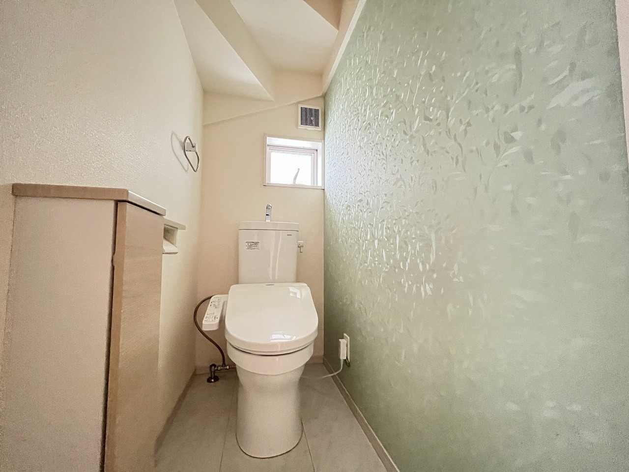 ウォシュレット機能付き。憩いの場としてひそかに注目度の高いお手洗いにもご注目ください。