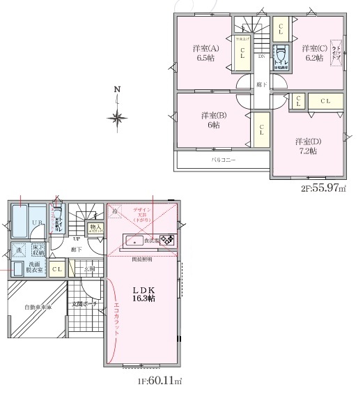 | 間取 | 4LDK (LDK16.3帖、洋室7.2帖、洋室6.5帖、洋室6.2帖、洋室6帖) | ||
