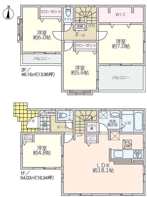 | 間取 | 4LDK+WIC (LDK18.1帖、洋室4.8帖、洋室7.0帖、洋室6.0帖、洋室5.6帖) | ||