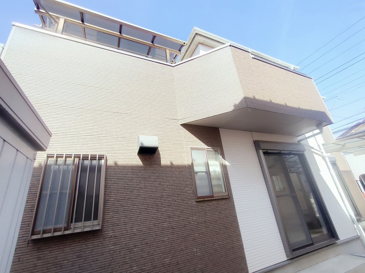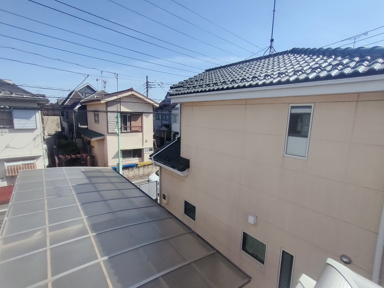 主に二階建てが中心の住宅街。近隣の屋根を高さを見ても、こちらの家と同じくらい。