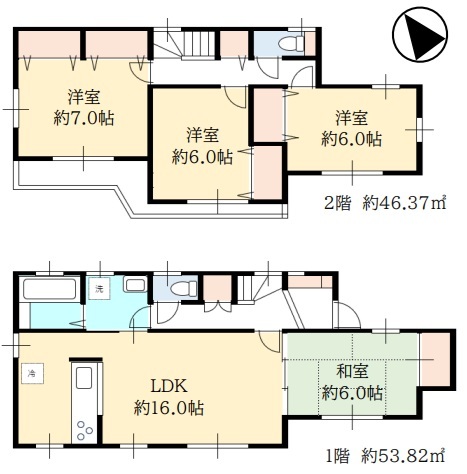 | 接道 | 南東側5M公道に接道 | 小学校区 | 川越市立牛子小学校(520m) |